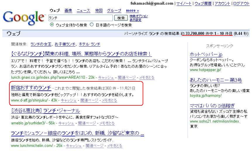 『目指せ1位!』といいたいところなんだけど、「ぐるナビ」は鉄板のような気がする。そもそも2位もいつまで持つか不明なので、記念に画面キャプチャーしときました。。。